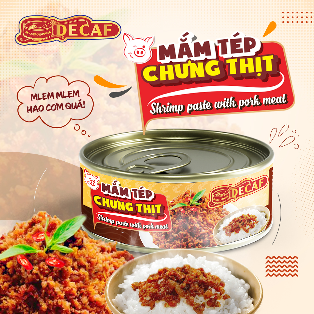 Mắm Tép Chưng Thịt Decaf được sản xuất chế biến theo dây chuyền công nghệ hiện đại, đảm bảo vệ sinh an toàn thực phẩm và nguyên liệu 100% tự nhiên tươi ngon chất lượng.